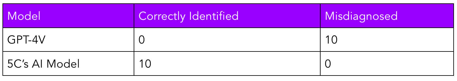 At 5C, we are massive believers in the transformative potential of AI in radiology, and our conclusion is that our experiment with GPT-4V and the above radiology images underscores the importance of specialized models. The experiment highlighted that despite GPT-4V's prowess in other domains, it might not yet be primed for radiological applications. That being said, vision transformers as a technology are going to be a key tool in the computer vision stack for AI engineers.